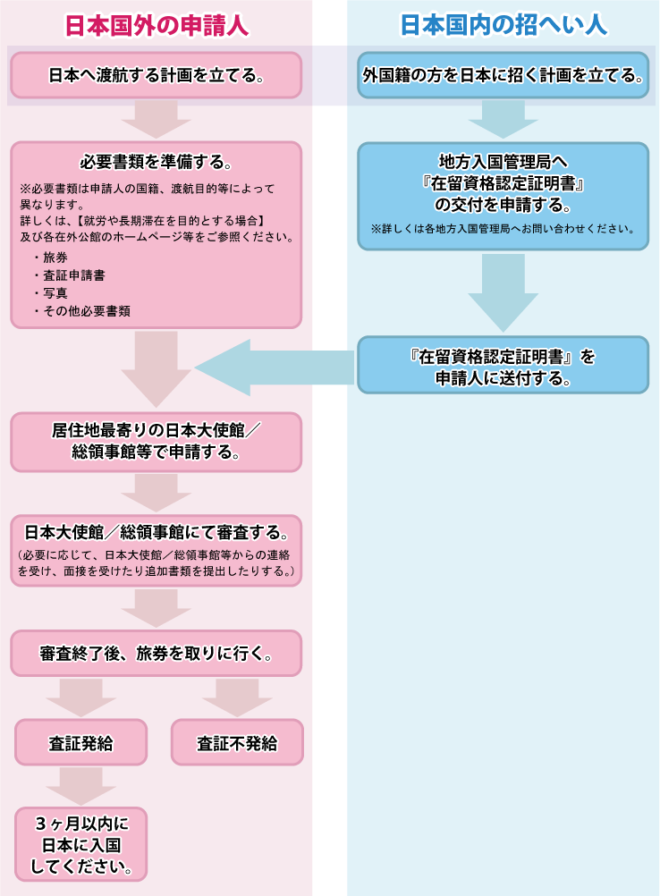 | 管轄 | 外務省(現地の日本大使館・領事館) | 出入国在留管理庁(法務省) |