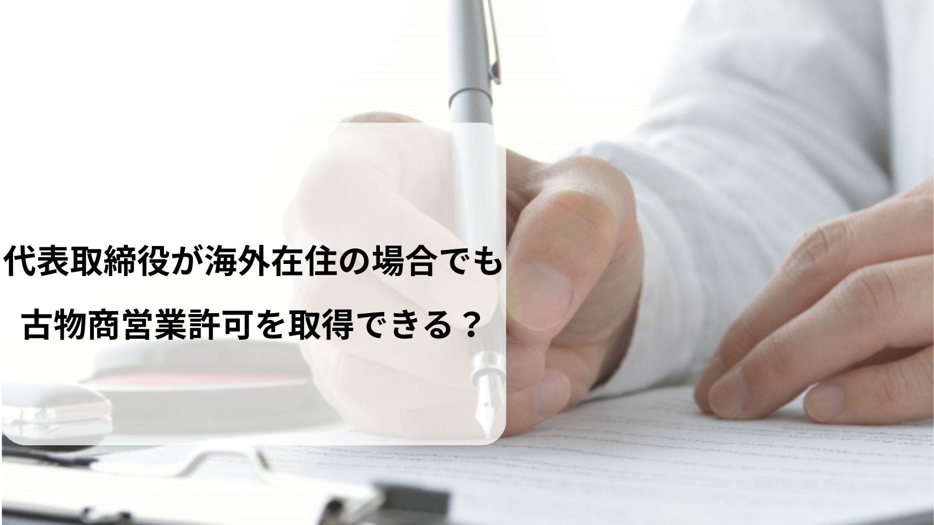 この記事では、法人で古物商営業許可を取得する場合で海外在住の日本人が代表取締役や取締役に就任している場合を例にして、許可を取得するための具体的な手順、よくある疑問まで、できるだけわかりやすく解説します。許可を取得することで、安心してビジネスをはじめることができます。