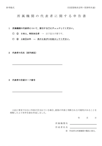 所属機関(勤務先)の代表者が日本人かどうかを確認するための書類です。カテゴリー3・4に該当するすべての申請者が提出する必要があります。
